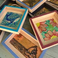 Her love of the local landscape—Plymouth’s beaches, pine hills, and animal life are reflected in a majority of her work. Keely is engaged with the local art, music, and small business community. Her “studio” can be anywhere—the beach, the classroom, or road-tripping cross country with her family.
